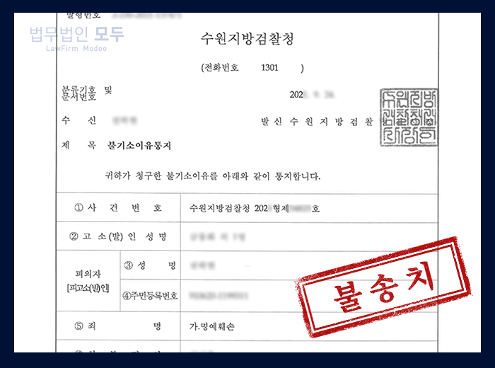 부정수표단속법 위반으로 여권무효화 기소중지된 사건 | 사건 요약개요부정수표단속법 위반으로 체포영장 발부되어 여권무효화까지 진행된 사건입니다.결과체포영장 반환 요청으로 체포 및 구속 없이 사건을 진행하였고, 변호인 의견서 및 재기신청서를 제출하여 공소권없음 을 이끌어냈습니다.────────────────────────────────────────────────────────────────────────| 상세 진행 과정1997년경 운영하던 회사가 부도났고 이 과정에서 여러 가지 문제가 생겼습니다.현재는 미국에서 거주 중인데, 나이가 많이 들어 이제는 한국에서 살고 싶습니다.오래전 여권을 발급받는 과정에서 제가 기소중지로 여권무효화가 되었다고 하던데 입국할 때 체포될까요?제 사건을 해결하고 한국으로 입국하고 싶습니다.1. 의뢰 당시 상황의뢰인은 1997년 경 운영하던 회사가 부도난 이후, 1998년 미국으로 출국하여 그곳에서 계속 거주하고 있었습니다.2010년경 여권 갱신 과정에서 '기소중지 사건이 존재한다'는 사실을 처음 알게 되었고,그 이후로는 한국에 입국할 경우 체포될 수 있다는 우려 때문에 귀국을 포기한 채 미국에서 생활해 왔고 미국 영주권까지 취득한 상태였습니다.그러나 시간이 흐르면서 한국에 정착하고 싶다는 생각이 커졌고,사건을 정리하지 않은 채 더 이상 미룰 수 없다고 판단하여 법무법인 모두에 상담을 요청하였습니다."입국하면 체포되나요? 사건을 해결하고 한국으로 돌아가고 싶습니다."상담을 진행해 보니, 의뢰인은 사건의 구체적인 내용조차 알지 못하여 여권무효화 원인을 파악할 수 없는 상태였습니다.사업 운영 중 문제가 있었던 것으로만 기억하고 있을 뿐, 고소 내용이나 고소인, 적용 법조 등은 전혀 알지 못했습니다.따라서 우선 정확한 사건 조회가 필요했습니다.2. 사건 조회 및 법리 검토의뢰인의 이름으로 전국 검찰청에 있는 모든 기소중지 사건을 조회했습니다.다행히도 사건은 단 1건만 존재하였습니다.사건명은 부정수표단속법 위반이었는데, 아마도 회사가 부도나면서 회사 명의로 발행한 수표에 문제가 발생했던 것 같았습니다.부도 처리된 수표는 4매였고, 액면금액은 3200만 원 정도였습니다.변호인은 이 자료들을 의뢰인께 공유하였습니다.수표 발행 시기, 금액 등을 확인하기 위함이었습니다.3. 의견 조율그런데 의외의 답변이 의뢰인으로부터 돌아왔습니다."변호사님, 이 수표들은 제가 발행한 것이 아닙니다.정확히는 부도가 난 후 미국에 온 것이 아니고, 회사 운영이 어려워지자 이 회사를 고등학교 동창에게 넘기고 미국으로 출국했던 것이었습니다.이후 회사가 부도났다고는 들었지만, 적어도 제가 회사를 운영할 때에는 수표를 발행했던 적이 없습니다.수표 발행일도 제가 출국한 이후 또는 임박한 시기인 것으로 되어있는데 아마도 동창이 발행한 게 아닌가 싶습니다."실제 수표의 발행자는 의뢰인이 아니고, 그렇다면 의뢰인은 피의자가 될 수 없는 상황이었습니다.만약 합의 쪽으로 진행한다면 공소권없음으로 진행이 가능하지만수표 소지인들을 찾기도 어려울뿐더러 무엇보다 합의금 수천만 원을 써야만 하는 상황이기도 했습니다.이러한 이유로 변호인은 의뢰인께 아래와 같은 의견을 제시했습니다."방법은 두 가지가 있습니다.수표의 소지인과 합의를 하거나 무혐의 또는 공소시효 완성을 주장하는 것입니다.첫 번째 방법은 입국하지 않고도 해결 가능하지만 수표 소지인들을 찾기가 쉽지 않고, 합의금도 수천만 원이 들 겁니다.두 번째 방법은 사건을 입국해서 진행해야 하는 문제가 있지만 수표 소지인들을 찾을 필요도 없고 무엇보다 수표 소지인들과 합의할 필요도 없습니다.부정수표단속법은 과실범도 처벌할 수 있도록 규정하고 있습니다.다만 발행인이 아닌 사람까지 처벌할 수는 없지요.즉 무혐의를 주장해 보고 입증이 어려울 것 같다면 공소권없음 쪽으로 사건을 진행해 보는 것도 방법입니다.참고로 본 사건은 체포영장이 발부되어 여권무효화 되어있습니다만 대검찰청 예규에 따른 대상 사건이므로검찰과 경찰에 체포영장 반환에 대해 이야기를 나눠볼 수 있을 것 같습니다.여권무효화로 공항에서 체포당하는 일 없이 입국할 수 있도록 도와드리겠습니다."4. 입국 결심 및 준비의뢰인께서는 본인이 발행하지도 않은 수표로 처벌을 받는 상황을 매우 억울해 하셨습니다.더구나 이러한 사건 때문에 20년을 미국에서 거주하며 한국으로 입국하지 못했던 것도 많이 억울해 하셨죠.충분히 상의하고 입국하기로 결정했습니다.의뢰인 입장에서는 많이 불안하셨겠지만, 충분히 설명을 드리고 입국하여 사건을 진행하기로 하였습니다.첫 번째 할 일은 체포영장의 반환이었습니다.체포영장을 반환하기 위해서는 두 가지 요건을 갖추어야 합니다.⦁ 기소중지 사건 처리 지침에 따른 대상 사건일 것⦁ 대상 사건의 피의자가 기소중지자 특별자수 기간에 재기 신청을 하였을 것이러한 이유로 재기 신청서를 접수하는 것부터 시작하였죠.5. 재기신청서 제출과 체포영장 반환마침 기