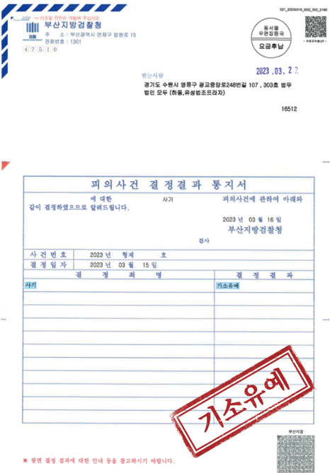 다행히도 사건은 불기소처분이 내려졌습니다.