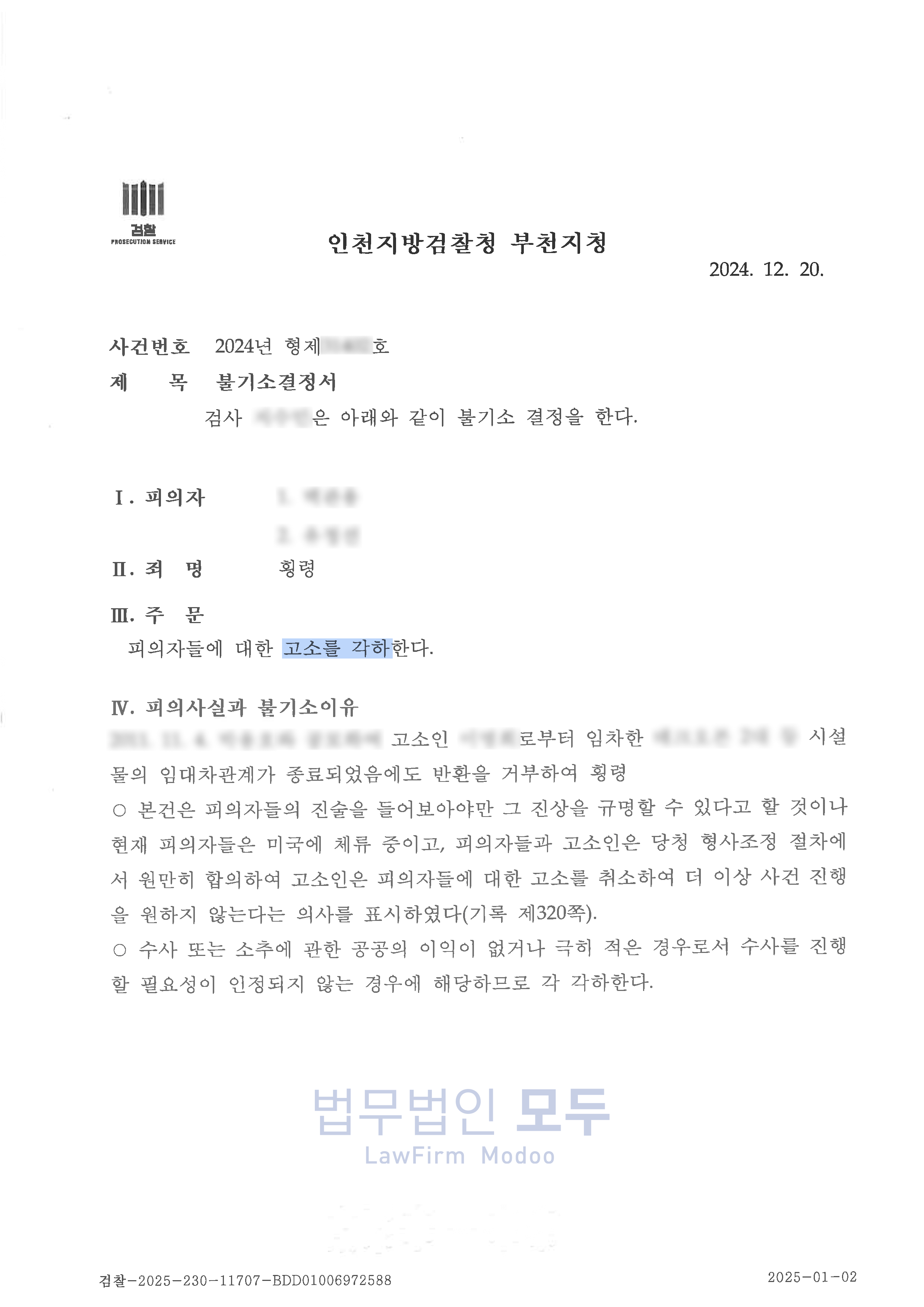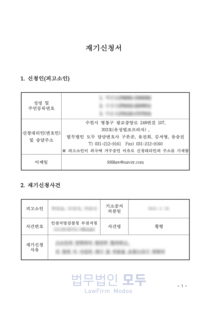 결국 범죄의 개연성뿐만 아니라 이 사건이 소추 조건을 갖추었는지, 각하 종결 사유는 존재하지 않는지 등을 면밀히 검토하여 재기 신청서에 기재하였습니다.