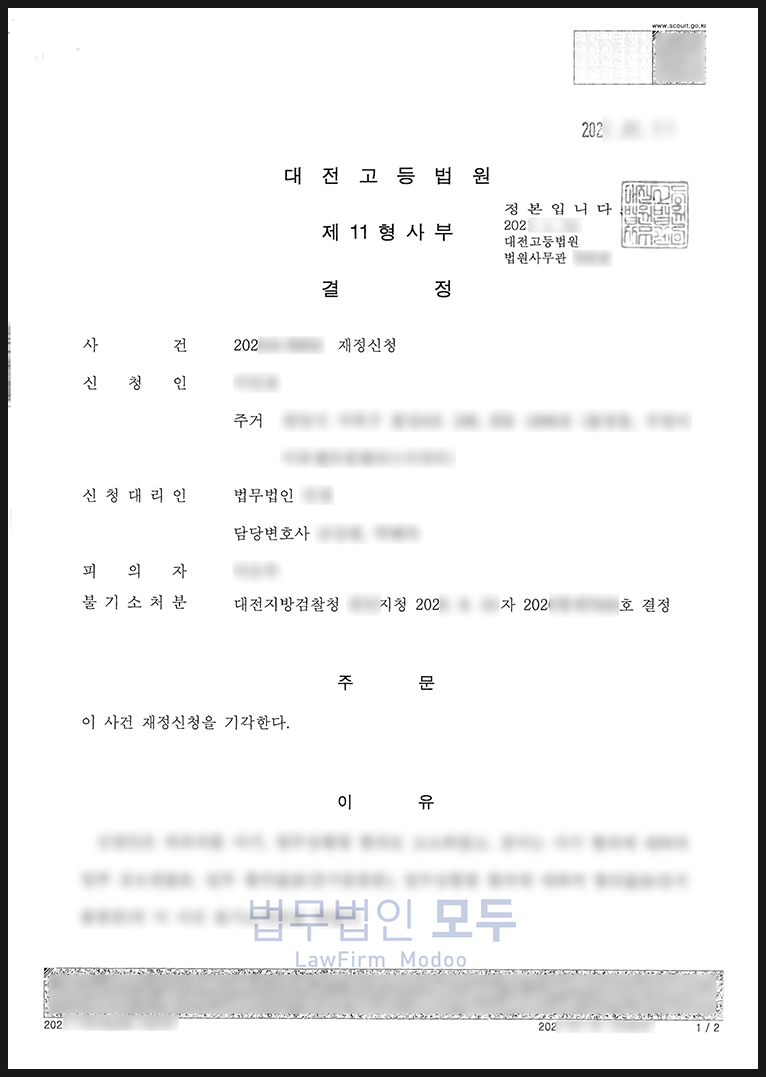이후 고소인은 항고 및 재정신청까지 진행했으나, 모두 기각되었습니다.