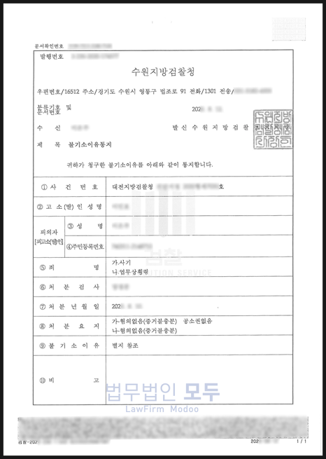통지서에는 변호인 의견서의 주요 논거들이 사실상 그대로 인용되어 있었고, A씨의 입장을 반영한 결론이 내려졌음을 확인할 수 있었습니다.