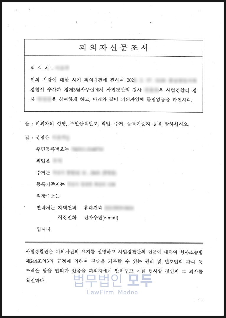 4. 사기죄 수사 대응 및 변호인 의견서 제출