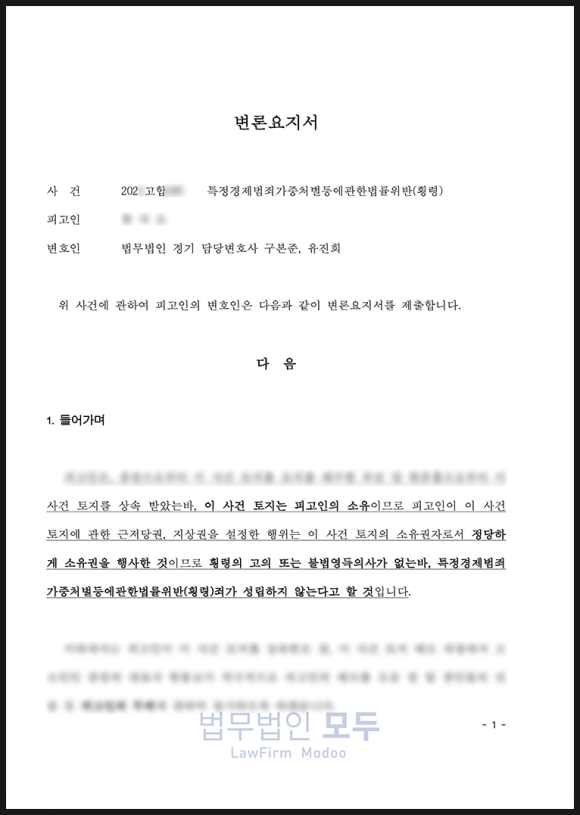 이 사건은 종중재산 명의신탁 여부가 쟁점이 된 고난도 경제 범죄 사건으로, 유죄가 선고될 경우 3년 이상의 실형이 불가피한 상황이었습니다.