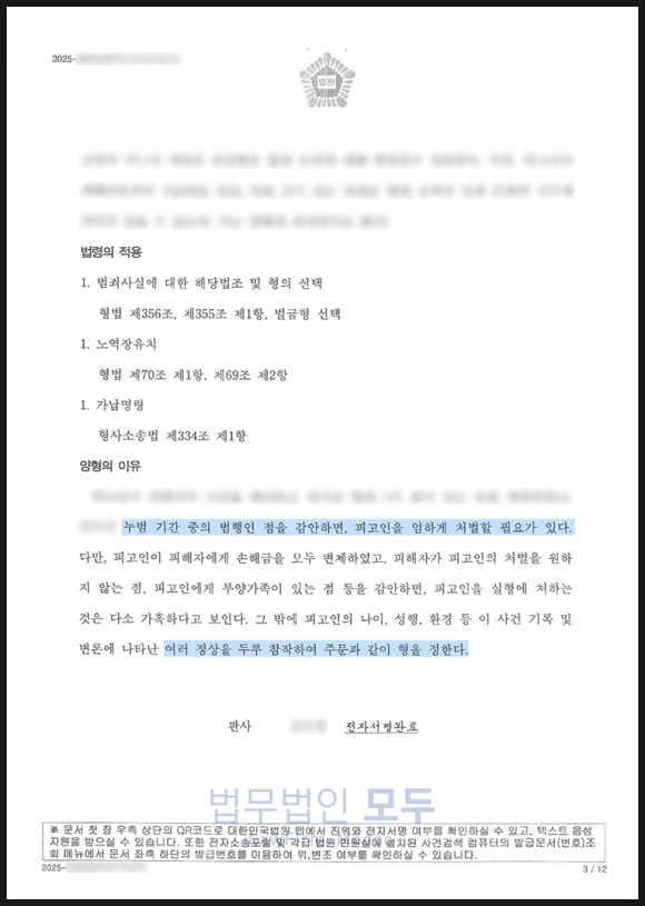 참고로 양형 사유는 피고인의 행위에 대한 것도 중요하지만 피고인이 재범을 범할 사람인지도 매우 중요한 요소로 작용합니다.