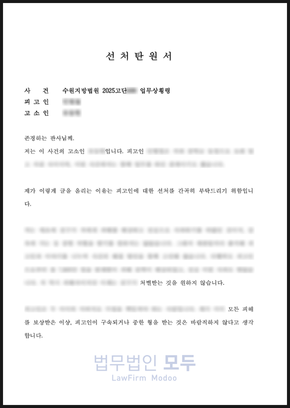 그리고 양형자료를 위해 선처탄원서 작성도 요청드렸습니다.